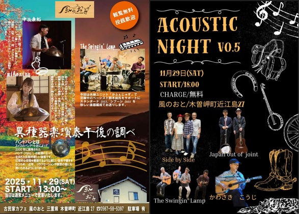 昼の部はハンドパンのグループとの対バンで、金属の柔らかな響きとジプシージャズの軽やかなリズムがどんなふうに溶け合うのか、今からとても楽しみです。
